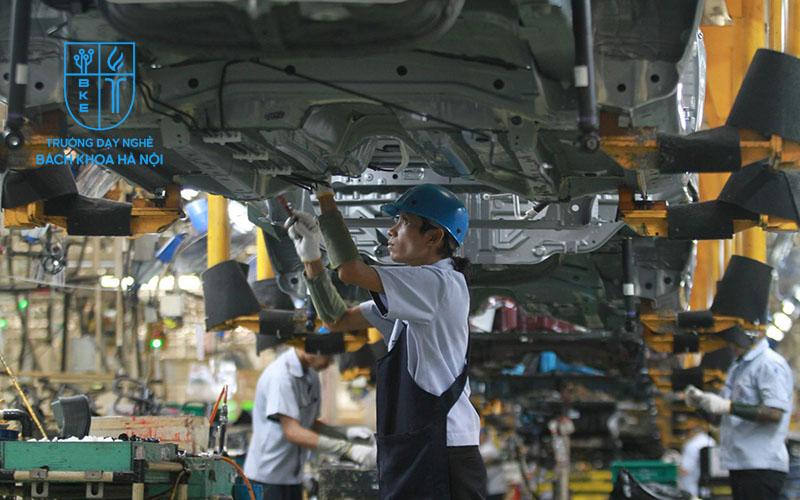 Dành cho những bạn yêu thích môi trường chuyên nghiệp tại các doanh nghiệp nước ngoài như Toyota, Honda hoặc VinFast. Tại đây, bạn sẽ tham gia trực tiếp vào dây chuyền sản xuất tự động hóa. Đồng thời, kiểm soát chất lượng từng chi tiết nhỏ hoặc nghiên cứu cải tiến quy trình lắp ráp nhằm nâng cao năng suất lao động.