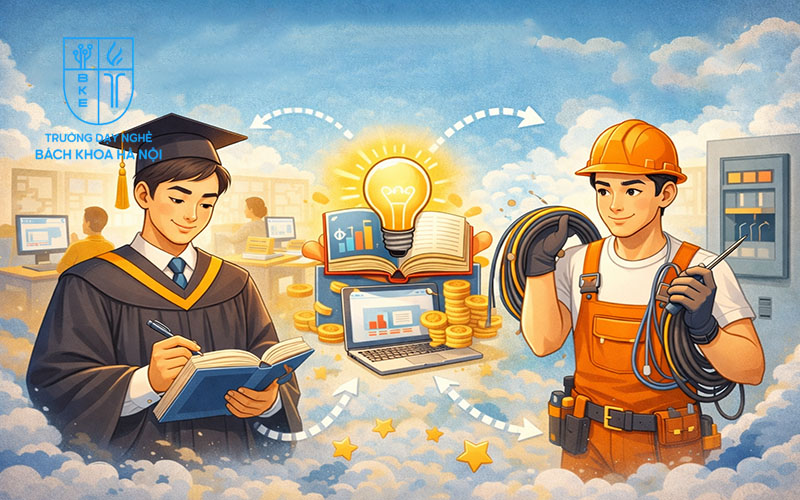 Trong khi đó, sinh viên đại học mất 4 - 5 năm học, cần thêm 1 – 2 năm tích lũy kinh nghiệm mới đạt được thu nhập tương xứng. Theo khảo sát của VietnamWorks (2024), lao động kỹ thuật nghề có tốc độ tăng thu nhập nhanh hơn 35% so với cử nhân mới ra trường.
