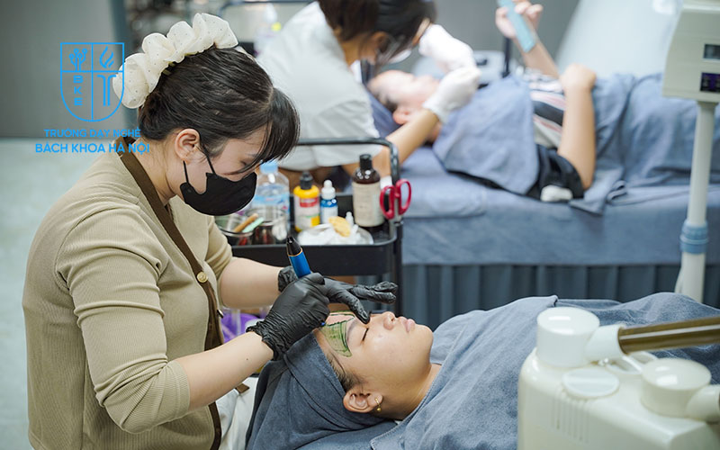 Học viên nghề spa tại Trường Dạy Nghề Bách Khoa Hà Nội được đào tạo 80% thực hành