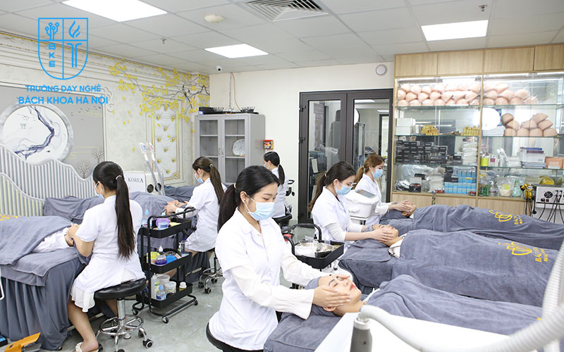 Phòng học phải sạch sẽ, đủ ánh sáng và được thiết kế theo mô hình spa thực tế. Người học được thực hành trên máy móc công nghệ cao thay vì chỉ học lý thuyết hoặc thực hành trên các máy cũ. Điều này giúp người học tự tin làm việc tại các Clinic Spa cao cấp ngay sau khi tốt nghiệp.